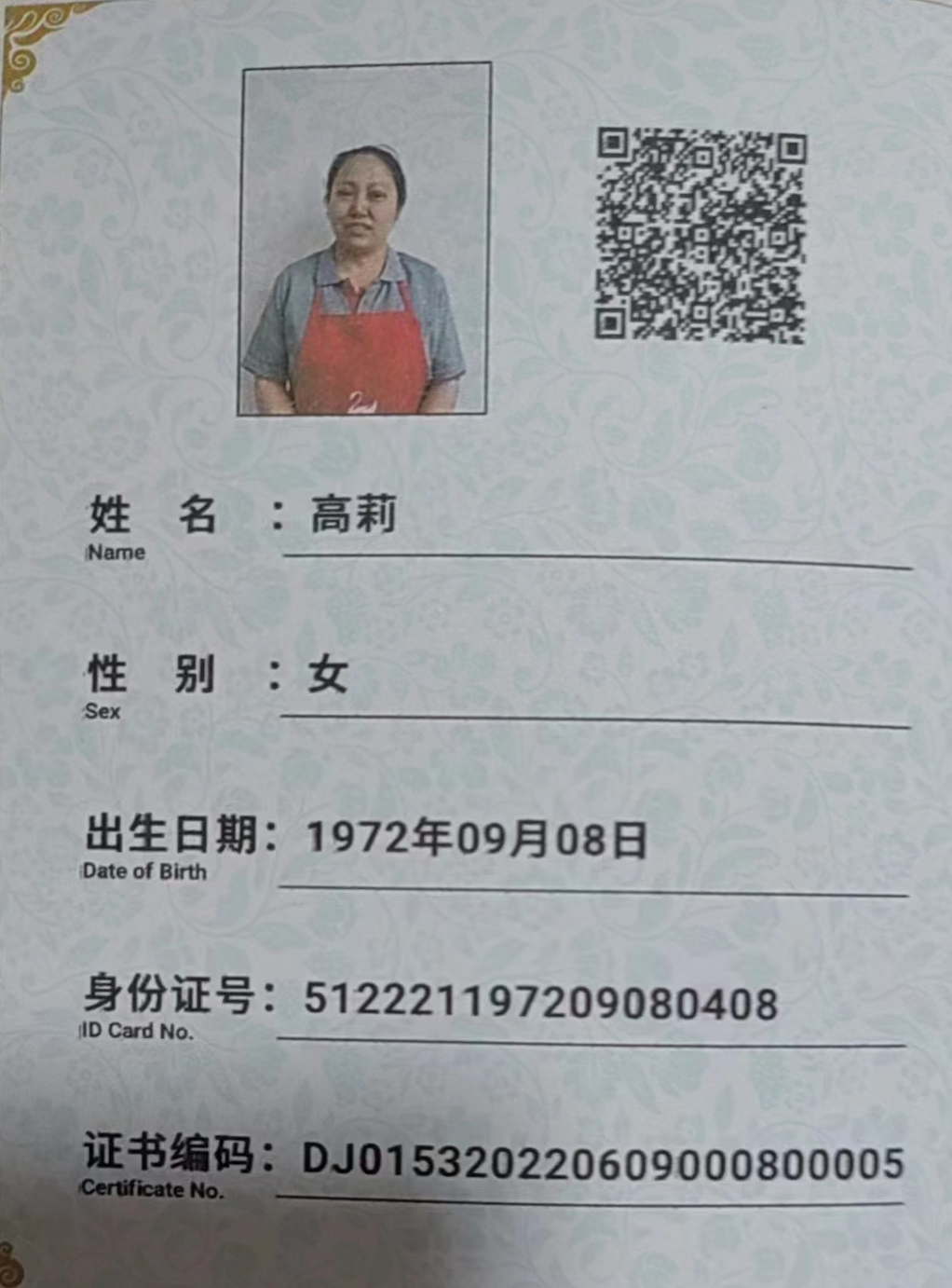性別:女; 學(xué)歷:高中;